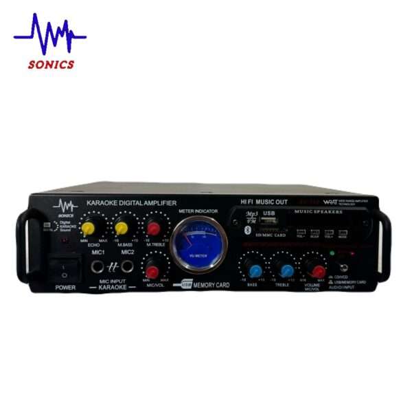 Introducing the SONICS AV-340 Amplifier, a powerhouse of audio excellence designed to elevate your listening experience. Immerse yourself in crystal-clear sound with an impressive 80W*2 output, delivering unparalleled audio quality. The AV-340 seamlessly integrates Bluetooth technology for wireless connectivity, USB compatibility for versatile media options, and features 2 microphone inputs, making it a versatile choice for both entertainment and presentations. Crafted with precision under the Sonics brand, this amplifier combines cutting-edge technology with a sleek design, ensuring a sophisticated addition to your audio setup. Transform your space into a sonic haven with the SONICS AV-340—where innovation meets superior performance.